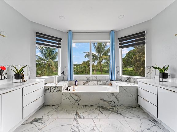 A 5 bedroom 3 bathroom, lake front property flooding with natural light throughout, high vaulted ceilings, an open space concept with a huge kitchen island all made with golden finishes, ALL WINDOWS HURRICANE IMPACT AND DOORS. Throughout bathroom has porcelain tiles with a marble finish, an amazing view from the master bedroom balcony as well as the master tub. 5th bedroom has been converted in to a dream closet with the option to convert back into a bedroom. It can be used as a nursery as well. A custom built wall with stone finishes and electrical fireplace you don't want to miss!
