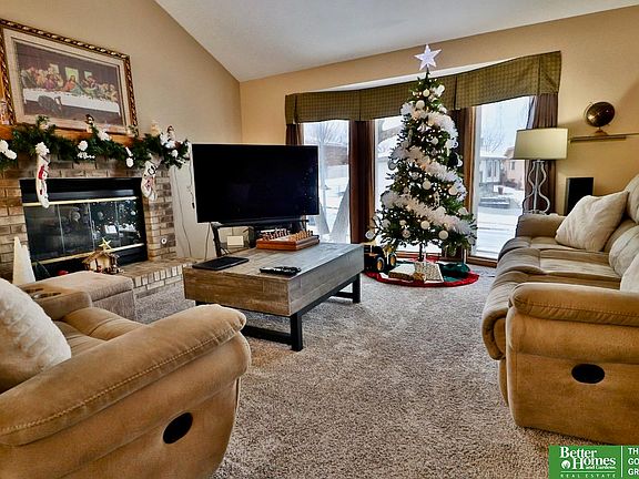 Partially fenced flat yardUpdated hall bathroomSprinkler systemComposite deckVaulted ceilingGas fireplaceLarge windows