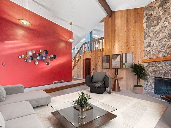 Enjoy a fun community atmosphere with walking trails, docks, boat racks, staffed lifeguards, a pavilion, picnic tables, grills, restrooms and changing areas, outdoor showers, and a playground. The community amenities don’t stop there! The recreation committee also hosts events such as movie nights for kids and concerts for adults. The 4 bed, 2 bath, waterfront home itself also has a lot to offer its new owners. Upon entrance, you are greeted by the grand wooden staircase that leads up to the large loft area with high vaulted ceilings that could be the 4th bedroom. The main floor has two entertainment spaces, one being the family room that boasts a floor-to-ceiling stone fireplace and the second being the cozy living room that opens up to the formal dining room. The dining room has neutral walls and a sizable window that allows natural light to fill every corner of the room. The eat-in kitchen is sure to impress with its stainless steel appliances, small square tile backsplash, and built-in cabinetry that allows for ample amounts of storage space. The kitchen also has an open area the perfect size for an additional dining table. The spacious master features a private en-suite bathroom with dual sink vanity and a walk-in shower and separate make-up area. The remaining bedrooms all have large closets ideal for storage and convenient access to the second full bathroom. Downstairs, the unfinished basement opens up endless opportunities for its new owners to come in and make this house their own. The basement has plumbing for a full bathroom. Some exterior features of the home include a two-story wooden deck and screened-in porch that provides a stunning view of the flowing river and wooded area behind the house. A large paved driveway leads to the oversized attached 2.5-car garage. This property is heated by oil, however natural gas is available at the road and the private community well water has a backup generator.