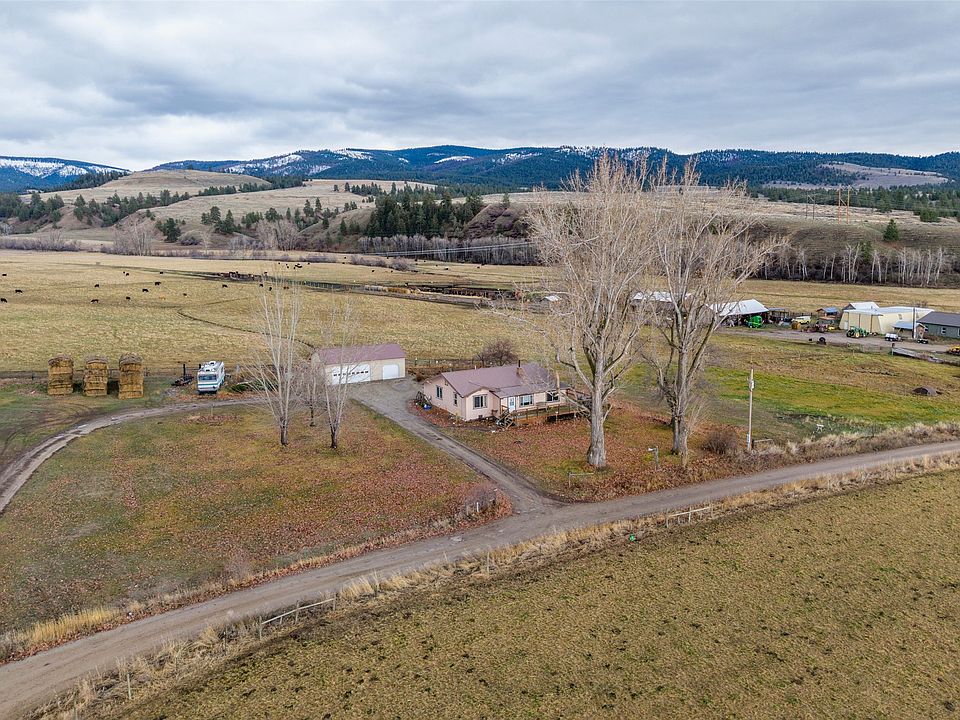 This cozy 2 bedroom, 2 bathroom home sits on just over 2.4 acres and offers classic Montana charm with wide-open views of both the Bitterroot and Sapphire Mountains. Built in 1952 and remodeled in 2002, the home features an open-concept layout that makes the living, dining, and kitchen spaces feel bright and comfortable. A wood-burning fireplace anchors the main living area, bringing warmth and a touch of rustic character. The home has a practical flow, making it an easy place to settle into. Outside, the acreage provides room for animals, gardens, or simply enjoying the surroundings. The detached 3-car garage offers ample storage for vehicles, tools and outdoor equipment. Bordering the new conservation easement on the historic Bolin Ranch, enjoy the promise of serene rural living indefinitely. If you’re looking for a property with mountain views, open space, and a down-to-earth Montana feel, this home is a great fit.