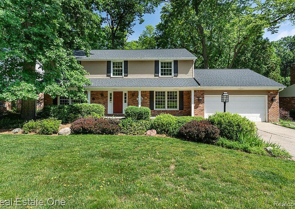 DON’T MAKE A MOVE WITHOUT visiting this GORGEOUS Colonial in the sought-after Chichester subdivision. 4 Bedrooms, 2.1 baths, full unfinished basement and 2 car attached extra deep garage. The welcoming large covered front porch and the brick paver walkway invite you in. As you enter this pristine home you will notice the beautiful hardwood flooring, crown moldings and calm neutrals throughout. This home is both cozy and sophisticated. Rooms are exceptional in size. The study/office is right off the foyer. Formal living room has a large bay window, newer carpeting. The great room has a beautiful floor to ceiling brick natural fireplace, cathedral ceilings and a large door wall leading out to the deck. Any chef would LOVE this kitchen with beamed ceilings, a brick accent double wall oven, electric cook-top, large pantry, Island, command center, ceramic backsplash, wood floors and a large eat in area. Dining room is off the kitchen and has a large window to enjoy. First floor offers a half bath and laundry room. Primary bedroom on 2nd floor is massive! Boasts an equally large walk-in closet with organizers. Primary bathroom offers a ceramic stand up shower, large vanity. Full bath upstairs has double vanity, bathtub/shower combo that is shared with 3 ample sized bedrooms. Large clean unfinished basement with glass block windows is ready for your finishing however you choose. Large chest freezer stays along with appliances shown. Deck is accessible from great room or garage. The beautifully landscaped and peaceful yard has unobstructed views of the wooded common area with a creek flowing through. Irrigation system. Updates include: Roof in 2016, HWH 2014, Payne gas forced air is about 10yrs old. Close to parks, trails Oakland University, I-75,great shopping and dining.