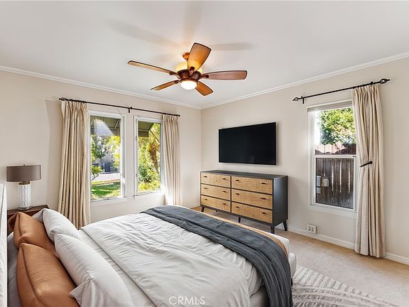primary offering direct access to the back patio and pool area. The bathroom includes granite counters, updated vanity and adorable tile accents. The home also has a cute sunroom, hardwood floors, new carpet and a detached garage with ADU potential. Located within close proximity to Kenneth Village, historic Brand Park, top-rated schools, Disney, DreamWorks and ABC7.