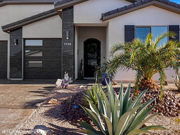 Short Term Rental Approved HOA - Highly Upgraded Home. Welcome to 1358 Manassas - Offering Open Floor Plan Living at its Finest. Living room, kitchen and dining area flow seamlessly one into another. Multi-panel glass sliding doors in living room bring in beautiful natural light throughout main living area. Highly upgraded home: Tiled floors throughout the home, costly wood shutters, kitchen: stone accents on front of center island ($2000), custom vent over stove, soft close drawers/cabinets, composite ranch sink, backsplash extends to top of cabinets, induction oven, massive walk-in pantry, upgraded granite and cabinets. Living room: Vertical panel blinds ($5,000), electric plugs in floor. Master Bath: Gorgeous oversized walk-in shower tiled floor to ceiling, glass enclosed front. Guest Bath: Tiled floor to ceiling shower w/glass front. Garage door ($7000) is insulated with designer windows. Mountain views from back patio, beautiful extended patio offers plenty of room for outdoor furniture and entertaining. Epoxy floors in 3 car garage. Extra slab poured for hot tub with a 220 line installed. Block wall surrounds entire backyard perfect for privacy. No room for a pool.