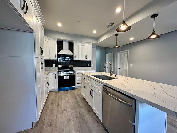 Stunning newly constructed front house, completed in 2023, features six bedrooms and three baths, perfect for large families. This home boasts modern decor with recessed lighting, laminate flooring, and a great floor plan that maximizes space and flow. As you enter, you'll immediately appreciate the attention to detail and quality craftsmanship throughout. The kitchen and bathroom countertops are made of luxurious quartz, adding an elegant touch to the home's sleek design. The kitchen is a chef's dream, with ample counter space, plenty of storage, and top-of-the-line appliances. The living room is spacious and inviting, and there's a second living room upstairs with a wet bar and sink, perfect for entertaining guests or relaxing with family. The master bedroom suite is a peaceful retreat, offering a private oasis with ample natural light. This home is individually metered for all utilities and features laundry hookups for added convenience. The attached two-car garage provides ample storage and parking space, while the central air conditioning and heating ensures that you're always comfortable. The large front yard and small back patio are perfect for outdoor gatherings and provide plenty of space for relaxation and recreation. you're enjoying a quiet evening at home or hosting a party, this home has everything you need. Renter is responsible for all utilities. All adults must have FICO scores of 700+. Bank statements and income will be verified.
