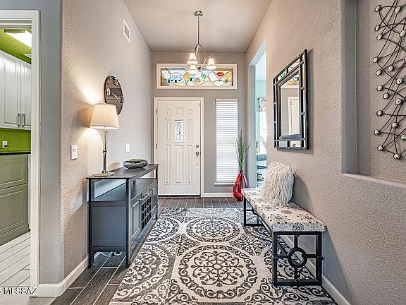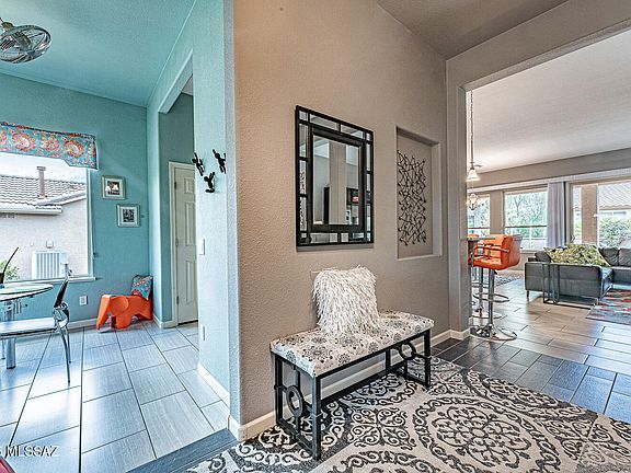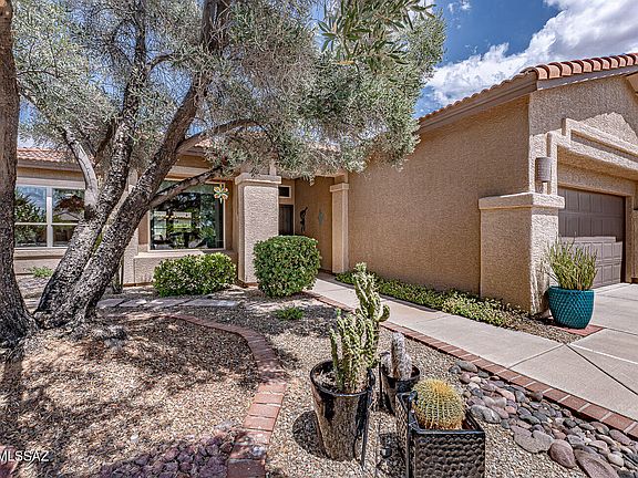 Exquisitely updated 3-BR / 2-BA home with 1913 sq ft in Quail Creek. Major interior updates include new tile flooring and baseboards throughout. (no carpet!) All new windows and patio door with quality Tucson Windows & Doors (includes lifetime warranty for the new owner). New Trane HVAC (2023), water softener (2024) full Kitchen remodel with new 40'' cabinets w/ upgraded 15'' depth including hidden drawers wine rack & pantry organizer. Granite countertops, stainless steel appliances, LED can lights, new pendant lights and fan. Hunter Douglas Silhouette blinds in light filled kitchen eating area. Built in entertainment unit with stunning lighted glass display cabinets in great room. Formal dining in large Great Room. Bay window in spacious Primary BR with beautifully updated bathroom; granite countertops, new shower w/attractive tile and decorative accents, new shower door, sinks, fixtures, lighting and