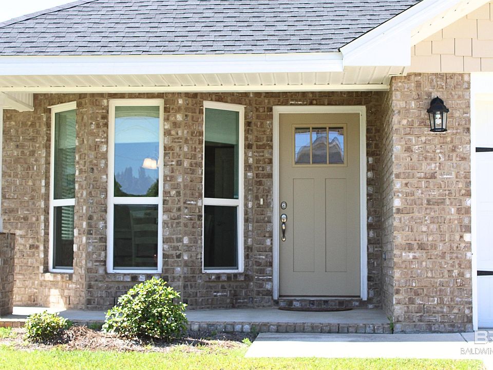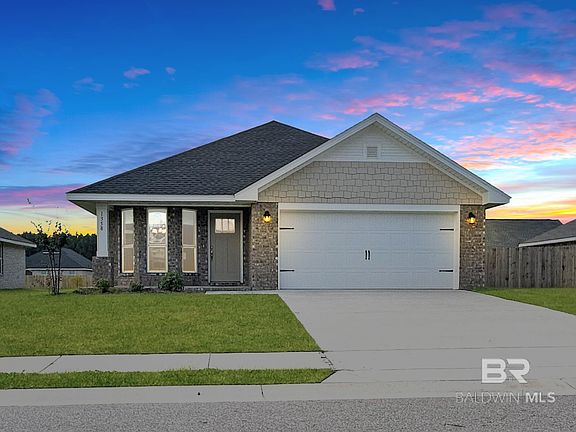 Like New - Built in 2023. Discover this move-in-ready for the Holidays 3-bedroom, 2-bath home situated on a premium lot in Heritage Landing subdivision. Step into the elegant dining area with charming bay windows that open into a spacious kitchen, with a 'farm' sink, featuring granite countertops, stainless steel appliances, including the refrigerator, and a view of the family room with tray ceilings. All of the Kitchen cabinets have 'soft-close' doors. Enjoy outdoor living under the corner-covered back porch, perfect for relaxing or entertaining. The large primary suite offers tray ceilings and a spa-like ensuite bath with dual vanities, a garden tub, separate shower, and private water closet. Both bathroom vanities have 'soft close' doors. The home is outfitted with luxury vinyl plank flooring (including the Primary Bedroom) and carpeting in bedrooms 2 and 3. This gem of a home offers an attached two-car garage, premium fabric hurricane shields, and a current termite bond for peace of mind. The washer, dryer and refrigerator come with the sale. Just minutes from shopping, dining, and the beautiful Alabama Gulf Coast beaches with Hwy 59 just down the street. Don’t wait. Make this property your dream home now! Call today to schedule your private tour and make this stunning home yours! Buyer to verify all information during due diligence.