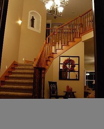 This beautiful and immaculate home offers all the space and upgrades one could hope for. Home features include; intercom and sound system throughout home and garage with controls in each room, smart house computer to remotely turn on furnace, lights, sound (software may be required), one switch to turn on exterior holiday lights and select outlets inside home, temperature controls in each room, radiant heat with efficient boiler system, air conditioning, and 9' ceiling in basement. Features found in the kitchen include; custom knotty alder and cherry cabinets, granite counter tops, 5 burner gas cook-top (with pull-out drawers), double oven, accent lighting, under cabinet workspace lighting, large island with double sink and breakfast bar for 2, phone desk, pantry, and appliance garage. Huge laundry room features a laundry sink, built-in iron board, folding area, and tons of storage. Master suite features; tray ceiling with accent lights, crown molding, sitting room with double doors, corner jetted tub, marble double shower, heated towel bars, and walk-in closet. All three bedrooms on the second-story have walk-in closets. Main level office has built in shelves