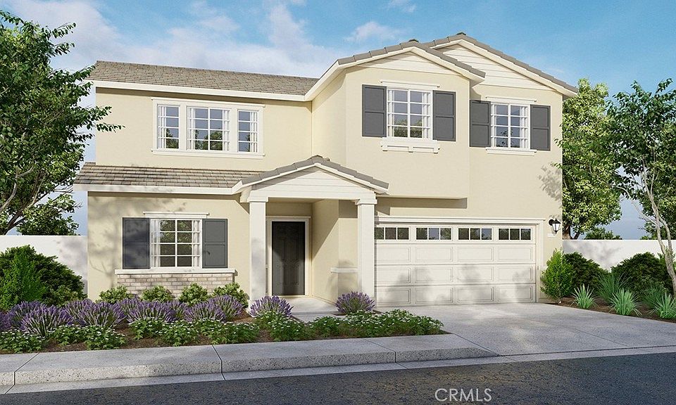 NEW CONSTRUCTION in PERRIS with SOLAR INCLUDED and NO HOA!! This 2,537-square foot California Traditional inspired facade home with an Extra Sized Large Lot of 18,000 sq ft has a wide entryway leading to the great room, dining area and open kitchen that includes crisp white shaker-style cabinetry, an island with a breakfast bar with Bianco Tiza Quartz counter tops, stainless steel appliances and pantry closet. The home has features that include a DOWNSTAIRS primary bedroom with ensuite bathroom, laundry room tucked behind the kitchen, and a secondary guest bedroom and full bathroom! Upstairs you will find three additional bedrooms, a full bathroom and a large BONUS ROOM for entertaining. This home has all the Smart Home features you would expect including an attached 2-car garage that is pre-plumbed for an electric car! The front yard is fully landscaped and irrigated. The community is close to shopping, parks and direct freeway access to the 215 freeway. This home will be completed in January of 2026.