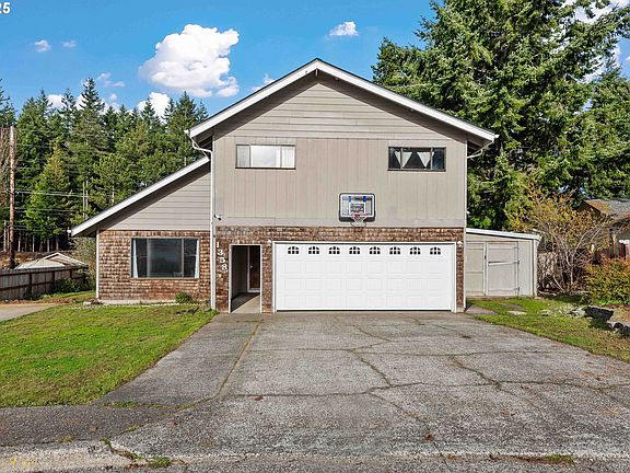 Spacious home in the desirable Edgewood subdivision within the North Bend School District. This well-maintained 4-bedroom, 2.5-bath home offers approximately 2,260 sq. ft. of comfortable living space, featuring vaulted beam ceilings and a pellet stove in the living room for cozy winter evenings. The bright kitchen and dining area create an inviting gathering space, with a sliding door that opens to the patio. Outside, enjoy a generous, fully fenced backyard—perfect for entertaining, pets, and outdoor activities .Additional features include an RV parking pad, double attached garage, covered workshop area, and extra gated parking. New roof in 2024!Move-in ready and located in a fantastic neighborhood, this home offers plenty of room both inside and out. A wonderful opportunity for your next chapter!