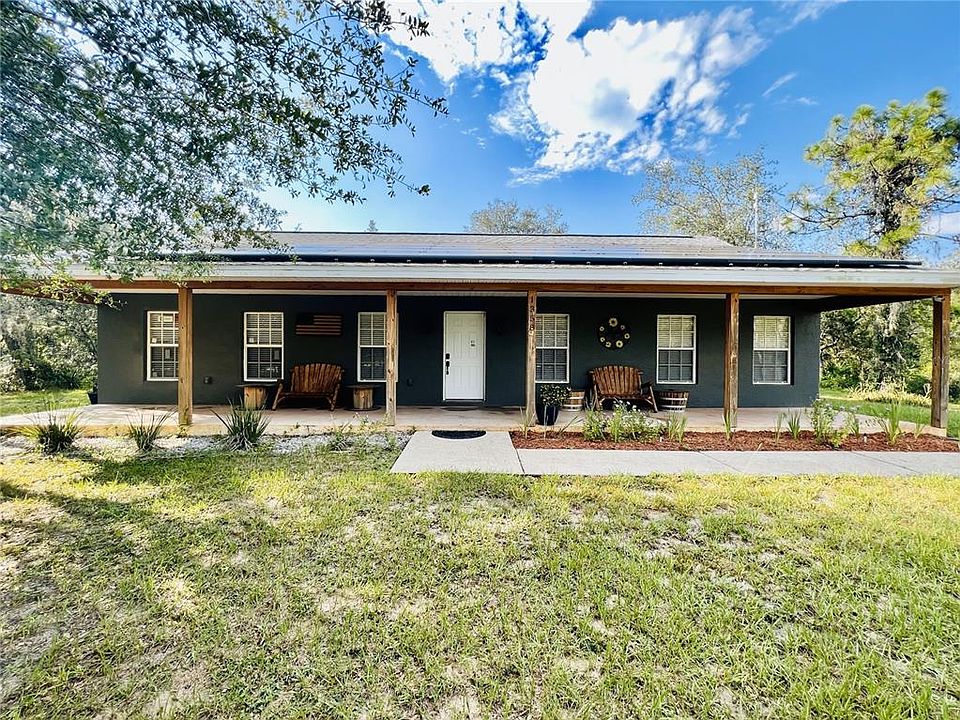 Welcome to your dream retreat nestled in the heart of the serene Blue Jordan Forest! This meticulously maintained 3-bedroom, 2-bath home offers a perfect blend of comfort, elegance and nature's beauty featuring a sprawling 3.34 acres of pristine land! This property provides the ideal backdrop for a peaceful and harmonious lifestyle. Step inside from your amazing front porch to discover an open and inviting floor plan. The living room boasts high ceilings and large windows that bathe the space in natural light and opens directly to your kitchen which features quartz countertops, wood cabinets and a large island with a sink. The three generously sized bedrooms offer plenty of room to unwind and the guest bathroom has been tastefully remodeled. The large master suite boasts an en-suite bath that features double sinks and a large garden tub, perfect for unwinding after a long day. There is also a generous master closet with enough space for all of your items! You'll surround yourself with the beauty of nature on this property, there is a screened back porch with a jacuzzi that overlooks your beautiful land. The property itself features walking/riding trails, a gun range, a large barn with electric, a Smithbuilt work shed with electric and your very own "she shed" with electric and hidden cabinets! There is also a Wingnet tower located on the property so you don't have to worry about internet and solar panels on the home which make your average electric cost around 33.00 a month! This home truly has it all and is even zoned for horses! Don't miss this incredible opportunity to own a piece of paradise in the Blue Jordan Forest. Schedule a showing today and experience the tranquility and natural beauty that this home and its surroundings have to offer. Your dream home awaits!