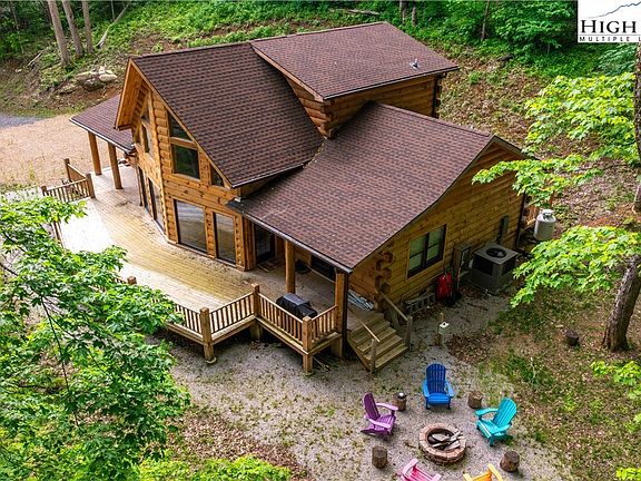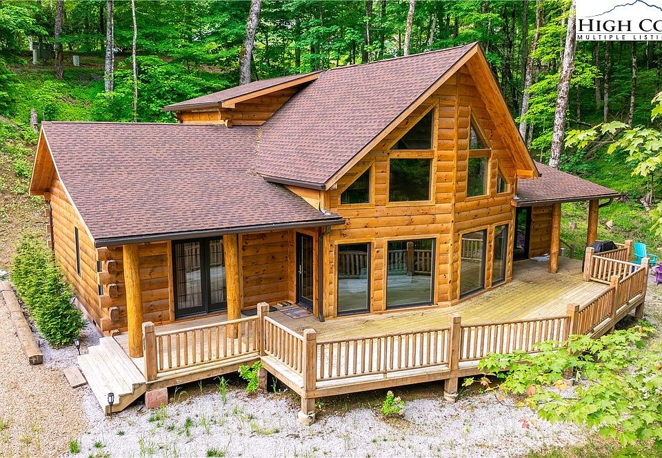 New custom log cabin on Sugar Mountain offering the perfect blend of mountain charm and modern style. Featuring soaring vaulted ceilings, expansive windows, and a light-filled open floorplan, this home feels both spacious and welcoming. With two master suites on the main level plus an additional upstairs bedroom. Imagine hosting guests over summer, winter trips over the holidays skiing and snowboarding, and renting this home out across the leaf season. Nestled on a wooded homesite, the property offers privacy while being only minutes from downtown Banner Elk and just 8 minutes from grocery stores and daily conveniences. Located directly across from Sugar Mountain Golf & Tennis and moments from skiing, hiking, and year-round activities, the setting is truly unbeatable. Uniquely decorated with an edgy, colorful twist—not the typical heavy rustic cabin—this mountain retreat is move-in ready and full of character.
