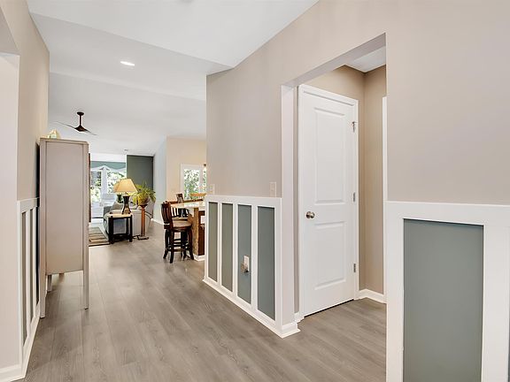 Tucked near the end of a quiet cul-de-sac and backing up to peaceful woods, this home offers the ultimate in privacy and relaxation. From the moment you step inside, you’ll notice thoughtful touches everywhere—from the wainscoting in the foyer and living room to the bright, open layout designed for everyday comfort and easy entertaining. The kitchen is a true centerpiece, featuring Quartz countertops, rich 42” Espresso cabinets, a striking backsplash, and a gas stove for the cook who loves to create. Vaulted ceilings in the kitchen and dining area add an airy, spacious feel. Just off the living room, a cheerful sunroom invites you to start your mornings with natural light and end your evenings winding down in comfort. The split-bedroom floor plan provides privacy for guests, with one room currently customized as a home office using the closet space—easily converted back if desired. The primary suite is a retreat of its own, complete with a walk-in closet, linen closet, and a beautifully tiled shower with a built-in seat. Plantation shutters are in all of the bedrooms. Step outside to your patio, where you’ll find a gas hookup ready for a grill—perfect for weekend barbecues, morning coffee, or evening cocktails under the Carolina sky. Add in the low HOA fees, and you’ll see why this property is such a rare find. Come experience the Palm Lakes Plantation lifestyle—quiet, convenient, and exactly where you want to be. All measurements are approximate, not guaranteed, and buyer should verify.