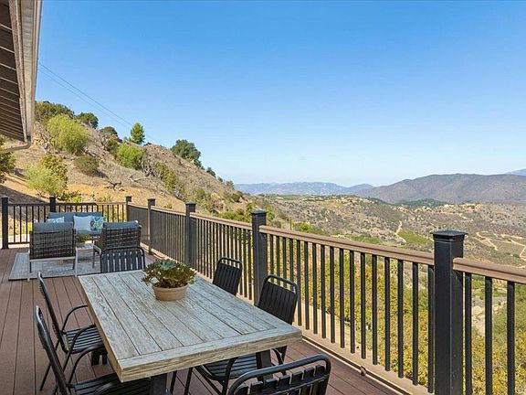 Enjoy sweeping panoramic views from this custom-built home perched on 3.36 acres and includes a 1-bedroom JADU with private entrance, kitchen, bath, and laundry - perfect for guests, rental income, or multigenerational living. The main house features vaulted ceilings, fireplace, an abundance of natural light, chef’s kitchen with two walk-in pantries and dedicated office/library. Enjoy the primary retreat which opens to the expansive deck overlooking the private pool, mature fruit trees and endless views. The secondary pad offers ADU potential, RV parking, or garden space. With room to grow, entertain, and create your dream lifestyle... this property has it all