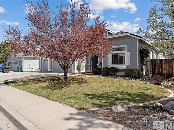 Located in South Reno, this special single story awaits! Step inside and be charmed by bright, functional interiors with soaring ceilings and neutral finishes. The living area offers a fireplace and abundance of space, flowing naturally into the open kitchen, where you’ll enjoy ample counter space, an inviting breakfast bar, pantry, and sizable dining area. An elegant primary suite with vaulted ceilings boasts plenty of room and natural light, connecting to an ensuite bath featuring a, a large soaking tub, glass-enclosed shower, dual sinks, and sizable walk-in closet. Additional bedrooms prove essential space for any lifestyle or purpose. In your sprawling fully-fenced backyard, enjoy the tranquility of a parklike ambiance, where you can unwind on the patio or play below the mature trees. The home also features RV parking with large custom gate, ceiling storage racks in large three car garage, washer, dryer and refrigerator in kitchen. Don’t miss the opportunity to make this dreamy property yours!
