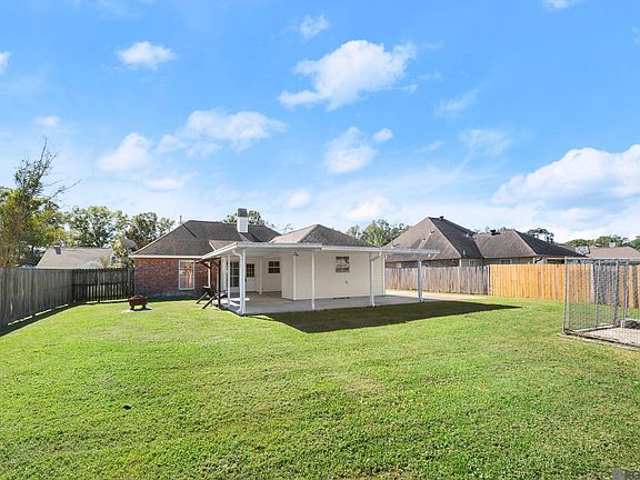 Welcome to The Meadows Subdivision, located in the highly desirable Livingston Parish school district. This 3-bedroom, 2-bath home will be the perfect place to have your own slice of Louisiana! Step inside to find vinyl tile flooring throughout the living room, hallway, and all bedrooms, creating a sleek and low-maintenance living space. The living room is a true focal point, featuring a vaulted ceiling and a cozy wood-burning fireplace with gas assist. The open kitchen and dining area are perfect for entertaining, offering a large corner pantry, ample counter space, an island, an electric range. A window over the sink fills the space with natural light. The thoughtful split floor plan provides privacy, with the master suite on one side of the home and the additional two bedrooms and hall bath on the other. Schedule your appointment today!!