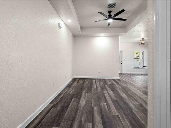 Two-car garageSleek granite countertopsContemporary vibeWhite tileBuilt-in microwaveCeiling fansKeyless entry