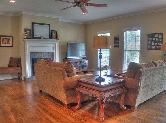 Lovely separate entry opens to polished formal LR and DR highlighted by hardwoods, fireplace, and high ceilings. Hardwoods flow into breakfast room, which overlooks manicured backyard, and kitchen (kitchen appliances remain with home). Split bedroom design balanced by private master suite and unusual secondary bedroom layout bath attached to BR 2 makes a convenient guest room. Wonderful space, convenient cul-de-sac location.