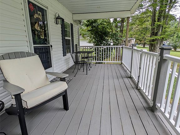 Fully remodeled 3-bedroom, 2-bath home in the heart of Pymatuning! Step inside from the covered front porch to a welcoming living room, flowing into the upgraded eat-in kitchen with stainless steel appliances. The master suite features a private bath with dual sinks and a custom tile shower. Two additional bedrooms offer generous closet space. Relax on the covered back porch or sit by the firepit on the swings. Attached garage with workbenches is large enough to store a boat on a trailer. Recent updates include a new heat pump for year-round comfort, metal roof, tankless water heater, and water filtration system. Quiet side street location, fully furnished, and completely move-in ready—start enjoying your lake life today!