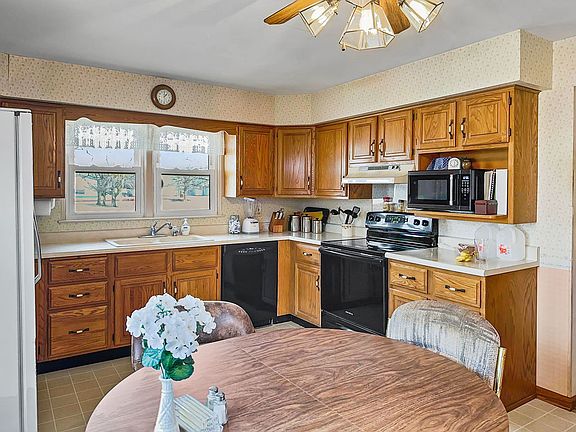 Large rambling ranch in the country is all electric, with 3 bedrooms and 2 baths. The living room has a vaulted ceiling and fireplace with electric log. The 27' family room has a large bay window to look out over the open farm ground behind. A big eat-in country kitchen. The master bedroom has a walk-in-closet and a bath with shower. Big laundry/mudroom, with sink, is just inside the 2 car garage. There is also a full basement. Seller found beautiful hardwood floors in 2 bedrooms and it is probably in other areas as well. Refrigerator, range, dishwasher, washer and dryer all stay. Storage shed in the backyard.