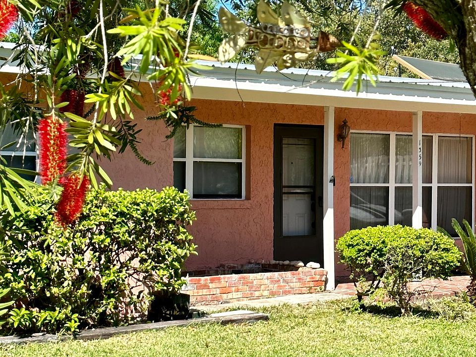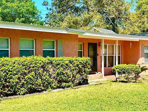 Great cement block house on quiet cul de sac with tile floors, linen closet, walk in closet in master, covered back patio, good sized fenced yard and cute separate screen house with built-in grill. Central heat/air, off street parking on driveway and to the right of the driveway. Most pets allowed, separate large (shared with landlord) storage building for bikes or tools.