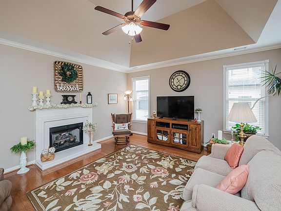 Large islandCozy fireplaceVersatile bonus roomPrivacy fenceCrown moldingScreened sunroomUpdated kitchen