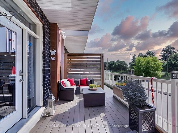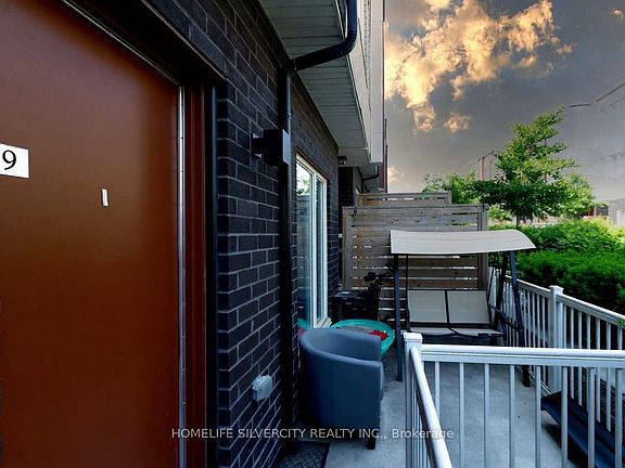 Introducing an exquisite stacked townhouse offering 2 bedrooms, a den, and 1 bathroom. This expansive residence features a 730 sqft floor plan plus an additional 186 sqft of private outdoor living space. Recently refreshed, the home showcases hardwood/laminate flooring, an upgraded kitchen, and smooth 9-foot ceilings throughout.Enjoy the spacious private patio with a gas line perfect for outdoor entertaining along with pot lights and an upgraded bathroom. The property includes one underground parking space and a storage locker.Ideally located close to shopping center, restaurants, schools, parks, and all essential amenities. A fantastic opportunity to own a beautifully updated home in a prime location. Water is included in maintenance fees.Fully heated underground parking and locker.