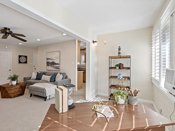 Nestled in a picturesque community, this 3BR/2BA condominium exudes style, functionality, & comfort. Wander through a well-manicured courtyard before entering this abundant abode, where plush carpeting extends through the bright living room & versatile alcove. The adjacent galley kitchen features stainless steel appliances, shaker cabinetry, & a sunny breakfast nook, catering to all of your culinary needs. Move down the hall to find a guest bath accompanying 2 guest bedrooms & a primary suite. Each bedroom offers tons of closet space, while the primary suite opens to a chic ensuite w/ a walk-in shower. In addition to this flourishing floor plan, appreciate reserved carport parking. Spend afternoons lounging by the community pool or explore San Jose's amenities. Nearby Santana Row & Westfield Mall feature various local favorite restaurants, shops, & entertainment to fill your weekends. Proximity to great schools, parks, & ample HWYS add even more convenience to your daily routine.