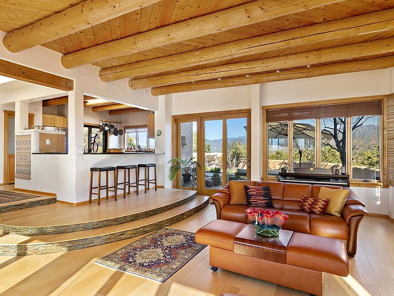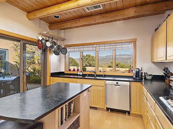 Hilltop retreat within a city location. Expansive views of the Sangres and city lights. Clean light-filled pueblo modern design, updated throughout. Air conditioning, open comfortable plan that includes a spacious principal bedroom suite, two additional bedrooms, one en-suite and a separate two bedroom, two bath guest house. Private cul-de-sac access. Enjoyable outdoor living spaces and hot tub spa. Wood and stone flooring. All sought out features in the desirable Tano Road area. Very close in but very private. Personal FaceTime tours available on request.