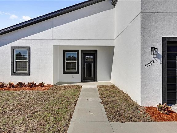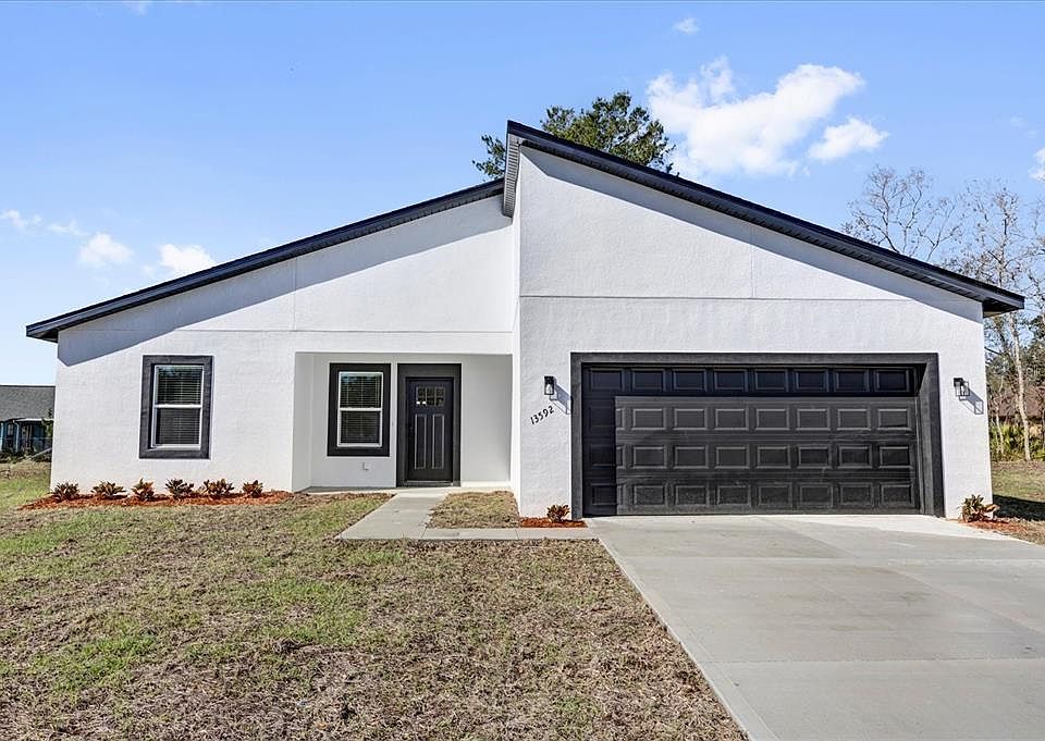 Space, style and a location you'll love at a great price point! Be the first to occupy this new 4/2 with 2-car garage, located on a circle in a quiet neighborhood. As you enter, you will notice that the high ceilings throughout lend to the open feel of the home. The kitchen offers generous lighting, quartz counters, upgraded SS appliances and a pantry closet. There is luxury vinyl plank flooring throughout the home, except for the Primary Bathroom. The Primary Bath offers everything you could ask for: Separate room for water closet, a shower, separate soaking tub, higher double vanity with quartz counter and lots of space. There are window treatments throughout the home as well. You will love the location of this home in Marion Oaks Unit 1. It is at the front of the subdivision, just two miles from I-75 and less than a mile to the new Aldi’s, only three minutes away! Marion County’s newest high school is under construction in Marion Oaks, just four miles away. All of this, and it is under a 1-year full Builder’s Warranty. Come see this beautiful home in a growing area. You will want to make it yours! Seller is a licensed Realtor.