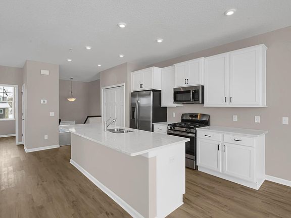 END OF MARCH COMPLETION - Welcome to the stunning Prescott townhome! The large, finished recreation room in the lower level will impress! This spacious entry area from the 2 stall garage provides plenty of room to take your shoes off. On the main level you'll find an open family room, large kitchen, informal dining area, and a balcony, giving this townhome an open and inviting feel. A beautiful fireplace sits as a focal point in the family room and provides an ambiance you can't help but notice. Details such as a tech tube and Designer-selected decorative hardware have not been overlooked. This home has plenty of windows and added LED lighting, making this home warm and bright. Upstairs, you will find 3 bedrooms, 2 full bathrooms, and the laundry area, all near each other for greater convenience. The laundry room even includes a washer and dryer! The large owner's suite has a private bath and a walk-in closet.
