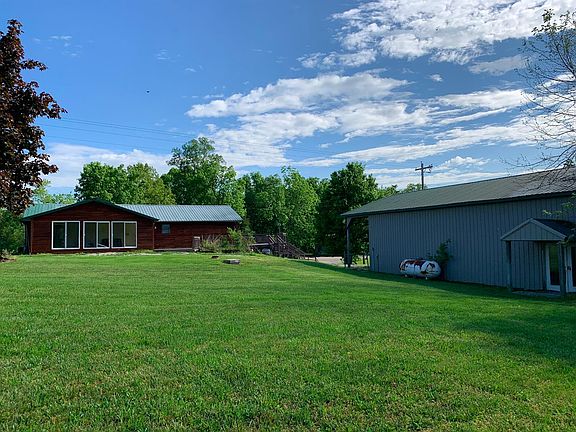 Country home on 1 acre. Features 2 Bedrm, 2 full bath. Open LR, kitchen area with counterbar, wood stove, New carpet throughout, fresh paint. Both bathrooms updated. Large Sun room used for 3rd bedrm. Huge Wrap around deck, newer HVAC and Furnace(2 yrs old). 30 x50 Pole barn with loft area and 14 ft doors. 24x30 barn with lean to.