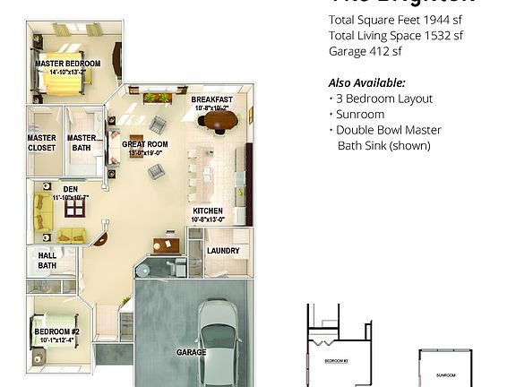 Now available! Located in Centennial Estates, the Brighton offers the best in maintenance free living. Immediately upon entering the home there is an abundance of natural light due to the open floorplan and exterior covered patio. The great room showcases a cozy gas fireplace and laminate plank flooring. The kitchen features white painted maple cabinets, granite countertops, a large island, and stainless-steel appliances. The owner's suite, complete with bath and walk-in closet, is tucked back behind the great room. Also included in the floor plan is a second bedroom, second full bathroom, and flex space, perfect for a den or office. The home sits on a good size lot and includes full sod w/ irrigation and beautiful landscaping. The Brighton is a high performance, energy efficient home. Enjoy peace of mind with a 10-year structural warranty, 4-year workmanship on the roof, and Industry-Best Customer Care Program.