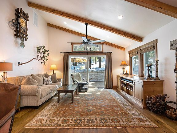 13595 Hansel is a special single-story home on a peaceful, flat lot in Tahoe Donner. This home was completely remodeled down to the studs by Sierra Craftsmen in 2020 and received a well-appointed addition that nearly doubled the square footage and transformed the space into a truly wonderful modern mountain home. Complete with walnut floors, custom cabinets and high-end bathroom and kitchen finishes, absolutely no detail was missed. The seamless flow of the great room offers the perfect setting for entertaining extended family and friends. There are 2 en suite primary bedrooms with large bathrooms and ample closet space. Soak up the summer sun on the patio that backs up to protected green space and offers seclusion from the neighbors. Stay warm inside by the fire or get outside and enjoy all the incredible activities that Tahoe has to offer. Offered completely turnkey so the hassle of moving in and getting settled is eliminated. Don’t miss this rare combination of ideal layout and pristine craftsmanship.