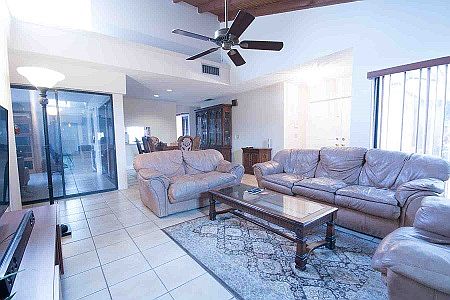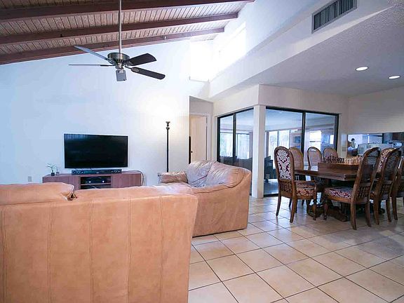 Just reduced! Gorgeous Crossings 1 story! High wood beam ceilings. Split master suite, pretty eat in kitchen. The liv/din opens to an incredible 22x18 huge enclosed florida room/game room with lots of light & opens to the back yard. Large fenced yard -rm for pool. Complete new roof added in 2006, AC replaced inside & out during last 2 years. Freshly painted inside & out. Walk to nearby satellite pool. Tennis, basketball,play area, heated pool, exercise, clubhouse and park. Won't last. Better hurry!