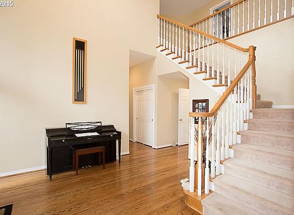 Custom built and setback on purpose to capture the views. Property line extends 10ft behind privacy trees in the back. Great floor plan in an excellent kid friendly neighborhood, steps to the park, unobstructed views of 3 mountains (Hood, Adam, St. Helen), gorgeous open entry with French doors, formal living room and dining room, 14x28 huge kitchen, 10ft ceilings, 13x44 master suite with lots of windows, 4 BR + Office + Huge bonus room.