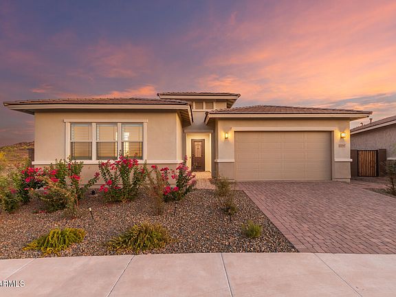 Welcome to this stunning 2024-built desert gem perfectly situated on a prime oversized lot with unobstructed views of mountains, desert landscape, and majestic saguaro cacti. With no neighbor behind or beside you and a park directly across the street, this property offers privacy and tranquility in one of Peoria's most desirable communities. Inside, you'll find elegant wood-look tile floors, designer Minka Aire ceiling fans, Toto toilet seats, USB charging outlets, whole house water filtration system, custom shutters with invisible louvers, and custom lighting throughout. The chef's kitchen features gas cook top & SS appliances, backsplash, massive island and quartz counters. Seamlessly flow outdoors with two multi-slider patio doors, creating the ultimate Arizona indoor/outdoor lifestyle Perfect lock and leave, this 3 bedroom plus flex room, 2.5 bath home is loaded with upgrades including professional landscaping with travertine tile, artificial turf, solar screens, electronic roller shade on back patio to fully close in the patio, and an iron screen door. This home also features a three car tandem garage, perfect to store your cars and toys! Close to golf, shopping, dining, 303, TSMC and Paloma Park! This move-in ready home blends privacy, low maintenance, and unforgettable views!