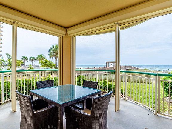 Great ground floor, east end unit. No elevators to deal with. This spacious, open floor plan enjoys 1750' of living area, 9' ceilings, state of the art kitchen with breakfast nook and granite counter tops, master suite with whirlpool tub plus a separate glass shower, and a balcony off each bedroom. Beautiful tile floors and crown molding. Fully furnished and never rented. Only 4 units per floor. Add all this to the best amenity package on Perdido Key with 2 outdoors pools, 1 indoor heated pool, clay tennis courts, fitness center, coded elevators, and a community room in each building. Hurricane shutters to protect your investment. Ready for your family to move in, so come enjoy the good life.