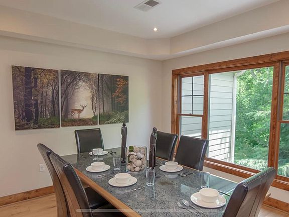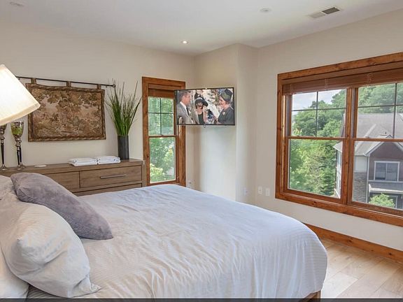 Available for 4-12 month lease. Variable rate. Luxurious large 2 story condo with 3 full bedrooms and 3 full bathrooms. Tastefully furnished and upgraded with wood floors. Great layout with a large kitchen with granite and stainless appliances. Counter top seating as well and a large walk in pantry. Formal dining area. Living area has tall tongue and groove ceilings with a floor to ceiling stone gas fireplace. The master on the main level opens to the large wraparound deck with creek and mountain views. Master bath has a double vanity, walk in closet, large walk in shower and enclosed toilet. a 2nd large bedroom on the main floor has direct access to the full bath which is also accessed from the living room. Full size laundry room with sink and cabinet storage. Upstairs is a 2nd living area, large 3rd bedroom and full bath. This unit also has lots of storage. A 5 minute drive to Downtown Banner Elk. Also to Boone and Beech Mountain.