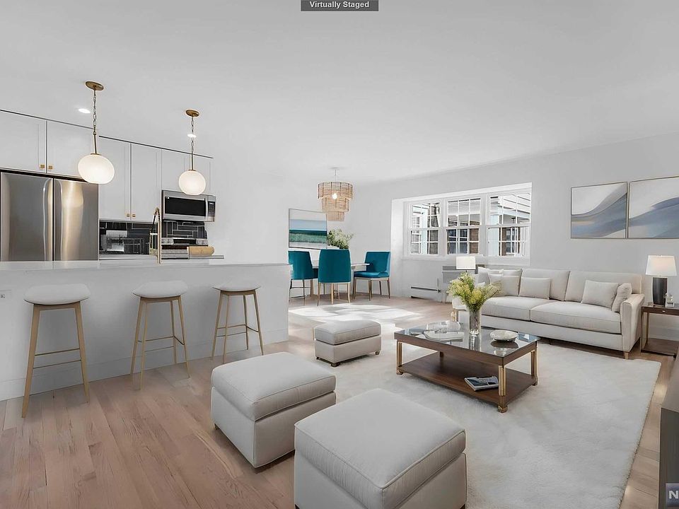 Step into this fully renovated Teaneck condo, seamlessly blending high-end style and practicality. Open and airy layout flooded with natural light designer influences and ultimate comfort. All-new luxe bathroom featuring a spacious vanity, tub/shower, and integrated marble bench seat. The kitchen boasts an oversized eat-up island, gleaming quartz counters, ample cabinets, and new appliances (ss/inter dw). The large bedroom offers his + her closets and ample space for furniture. Benefit from all-new energy-efficient windows, heaters, and AC for year-round comfort and savings. Freshly painted walls and refinished hardwood floors add to the designer-inspired space. This unit includes 1 parking space, additional visitor parking, large dedicated basement storage, and onsite laundry. Perfectly situated near houses of worship, bus routes, restaurants, shops, and Holy Name Medical Center, indulge in modern living in this exquisitely designed condo. Owner Occupant.