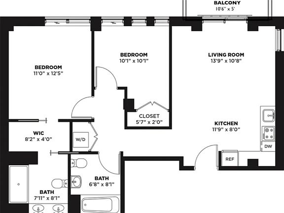 Central airIntegrated high-end appliancesWalk-in closetPrivate balconyFloating double vanitySpa-like en-suite bathroomKing-size primary suite