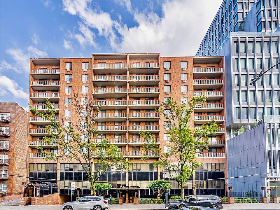 Welcome to Wisteria Gardens! This sun-filled 6th-floor condo is located just off Main Street in the heart of Flushing.Facing north and sitting south. this beauty offers 2BR X2BA. The master bedroom has an ensuite bathroom, 1045 sqft of living space. open layout, a spacious living room. a formal dining room. with a extra large balcony. hardwood floor and abundant closet space. Absolutely move in ready! washer and dryer in the unit. The unit also includes a parking space. Low management fee of $464.90 per month (all utilities included except electricity), and property tax is only $4682.64 per year. doormen downstairs, The location is unbeatable.. Short walking distance to 7 Train, LIRR, and Buses. Directly across the street from Bank of China, ChangFa Supermarket, and GW Supermarket, the location offers unbeatable daily convenience. come with your family and make it your own.price to sell! won't last.