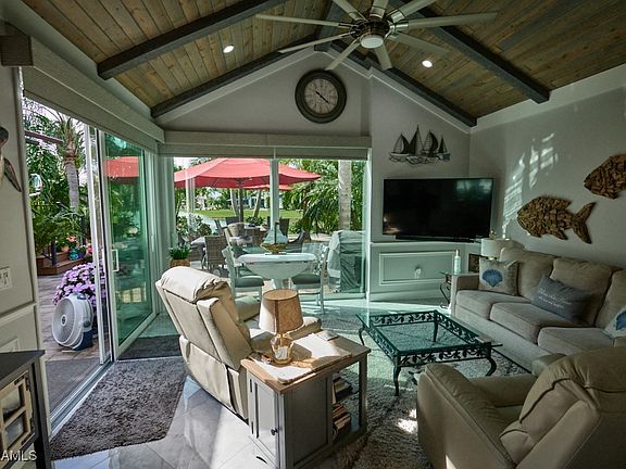 Discover a property that’s almost too good to be true, a spectacular waterfront retreat with loads of shade! Imagine stepping into your own lush, tropical haven. Lot 136 is the ultimate getaway where privacy and charm meet the enchantment of a secluded island escape. Towering palm trees drape gracefully over the property, providing cool shade and a serene ambiance while framing breathtaking views of the tranquil lake and its centerpiece fountain. Whether it’s the gentle touch of sunlight or the soft glow of moonlight, this peaceful scene will captivate you day and night. This is a pride-of-ownership property where care and love shine through in every detail. The lot was refreshed with sealed pavers in August 2024, giving it a pristine, polished look. At the heart of this oasis lies a spacious Coach House, a masterpiece of design and comfort. Step inside to be greeted by stunning glass sliders, soaring ceilings, and a chic loft that adds a touch of rustic elegance. The luxury continues with high-end finishes throughout, including granite countertops, a farmhouse sink, and an eye-catching designer backsplash. The convenience of a bathroom with a washer and dryer completes this perfect space for both relaxation and entertaining. Life at RiverBend Motorcoach Resort is as vibrant as it is relaxing. This golf cart and pet-friendly community is nestled along the scenic Caloosahatchee River, complete with a private boat ramp for your water adventures. Resort-style amenities include a sparkling large pool, a lap pool, hot tubs, and a cabana pool bar providing endless ways to unwind and soak up the Florida sunshine.