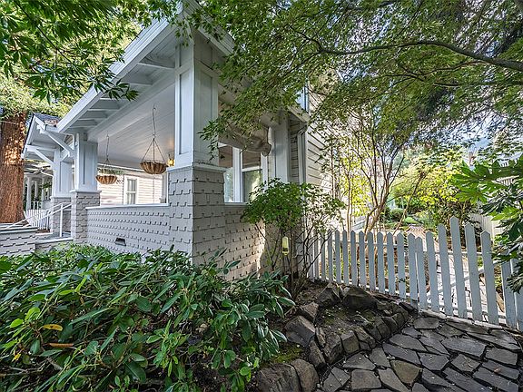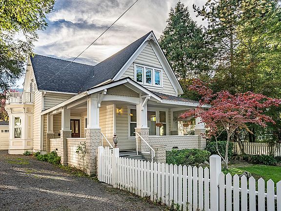 Prime location just 2 blocks to downtown Ashland. Inviting large wraparound porch for evening visits w/friends & neighbors. This 1895 Craftsman style home is immaculate w/beautiful interior spaces, loads of natural light, 12' coffered ceilings, skylights & cheerful breakfast room w/window seats. A white picket fence, lawn areas, stone & brick walkways w/arbor, lovely rear deck & lush greenery add to the incredible charm. Spacious comfortable living room w/gas fireplace, formal dining room, artistic use of crown & picture frame molding, board & batten & wainscoting. Sweet kitchen w/built-ins, tile counters & large pantry. Main level suite w/private bath. Upper level features 2nd & 3rd bedroom + 2nd bath w/clawfoot tub. 3rd bedroom was utilized as an art studio, addition of closet & entry door will convert back to 3rd bdrm. This is a lovely spacious room w/skylights & views. Balcony off upper level. Rear decking, sweet yard, garage & work room.
