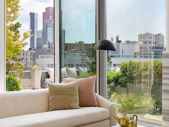 Adorning the living and entertaining spaces of the upper floor is an expansive and polished private outdoor spaces with full irrigation and landscaping.The 1,600+ square foot terrace creates truly functional indoor/outdoor living experience, complete with an outdoor kitchen and dining area that flows effortlessly from the interior kitchen. With southern and eastern exposures and floor-to-ceiling windows, the residence offers a private living experience that is open and light. A wood-burning fireplace ensures the home is equally built for the colder months as it is for summer.