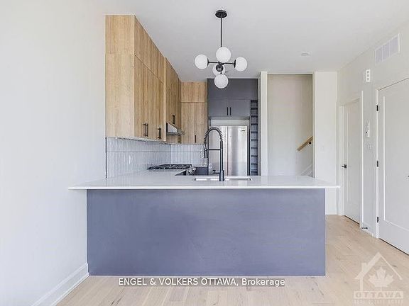 Welcome to 136 Carillon Street Unit A, an executive townhome offering three levels of modern living in one of Ottawas most accessible neighbourhoods. Designed with style and function in mind, this residence combines high-end finishes with a thoughtful layout perfect for both everyday living and entertaining. Step inside to a bright and open main level where expansive windows fill the space with natural light. The chef-inspired kitchen showcases a large quartz countertops, sleek cabinetry, and premium stainless-steel appliances. The dining and living areas flow seamlessly, creating an inviting space for gatherings. The second level offers 2 well-sized bedrooms with generous closet space, a full bathroom with modern finishes, and a convenient laundry area with stacked washer and dryer. The third-floor is dedicated to the private primary suite, where you'll find a spacious walk-in closet, an ensuite with a freestanding soaker tub, and glass shower, plus direct access to a private balcony with sweeping neighbourhood views - perfect for enjoying your morning coffee or evening unwind. With additional storage, premium flooring throughout, and outdoor living space, this home checks every box. All utilities are extra.