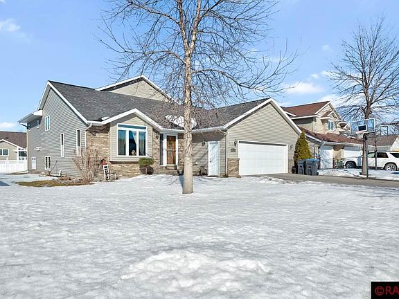 Welcome home to this spacious 5 bedroom, 3 bath multi level home in Cougar Estates. Head inside the entry and find a vaulted main level living area. Up the hardwood stairs to the open floor plan kitchen & dining area. Tiled backsplash & stainless appliances. Just off the kitchen area is a second living area/tv room, with access to future deck. Tucked away is a perfect little office also. Just down the hall to the master suite, with laundry nearby. Master suite has large walk in closet, and private master bath with separate tub/shower and double vanities. Second bedroom is just through the barn door off master bedroom. A regular door between the two could be installed for more privacy if desired. Second full bath completes the upper level. Down the stairs to the lower level find a HUGE family room area, perfect for entertaining or enjoying yourselves. Wet bar area with fridge. 3 more large bedrooms and full bath too. Under stair storage/play area and utility room round this level off. Updated mechanicals - A/C and furnace 2019, tankless water heater 2020, passive radon system, owned water softener. Enjoy the partially privacy fenced backyard this summer, with shed for extra storage. Garage is insulated & heated. Do not miss out on this home, which is just minutes from all the Mankato Hilltop activities and convenient access to Hwy 22.