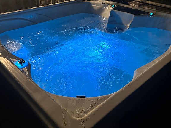 Beautiful kitchen, covered front/back patio with comfortable furniture, outdoor gas firepit, wood firepit, Gym, Hot Tub, Saltwater heated pool, Patio string lights, plenty of backyard space, and a 6 burner BBQ grill.