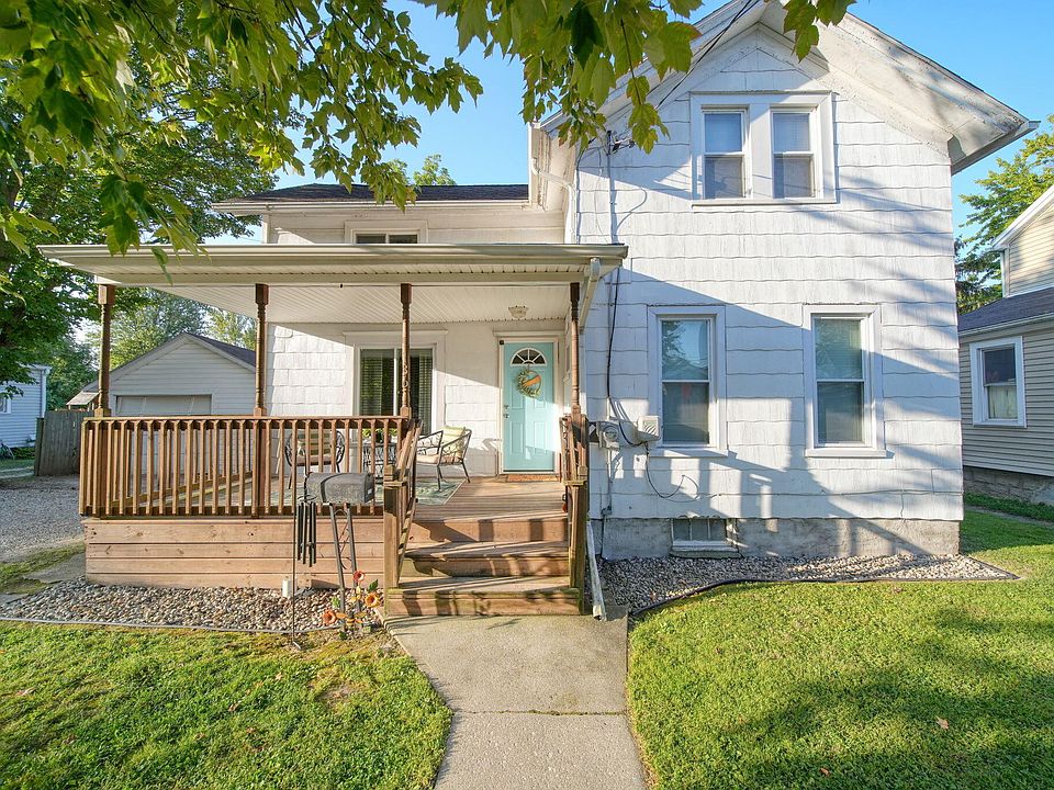 At no fault to the Seller or home, This home is back on the market due to Buyer's financing. Welcome home to this Charming 4 bedroom, 1 bath home in the heart of Adrian! Step inside this Adorable two story home filled with 2 spacious bedrooms and living space, formal dining room, and refinished hardwood floors through the main level with 2 more great sized bedrooms on the second floor. The large kitchen has been freshly painted, includes ample space for kitchen storage, and comes with all appliances! Central A/C was installed in 2022, furnace, new ductwork, electrical, plumbing, vinyl windows, carpet all new in the last 5-6 years. Washer and dryer are located in the basement but can easily be converted into the upstairs closet for convenance. Outside you will find a large backyard, one car garage, patio in back and a wonderful front porch to enjoy cozy mornings or nights or enjoying company! This home has everything you need from space, comfort, updates and Charm!!!