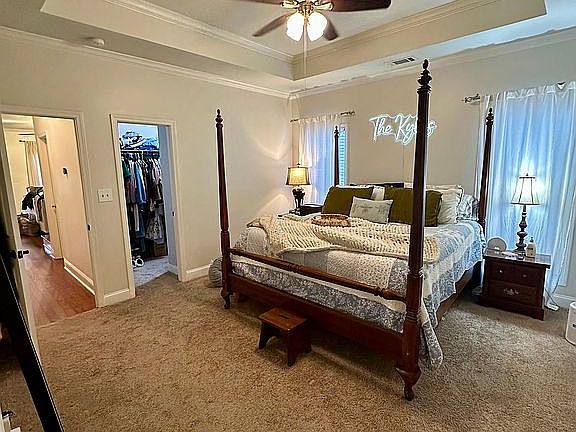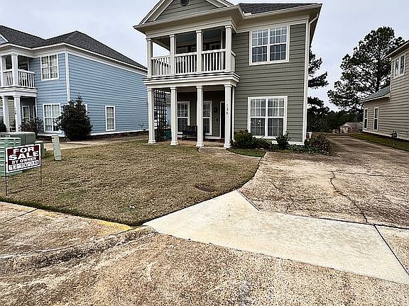 Inside, this move-in-ready home offers granite countertops with a bar for extra seating, crown molding, wood-laminate flooring, and a convenient side entry into a mudroom/laundry room with built-in cabinet storage. The open floor plan includes a spacious primary suite with a walk-in closet, stainless steel appliances, and an upstairs Jack-and-Jill bathroom with balcony access, making it an ideal first home, game-day retreat, or student housing opportunity.