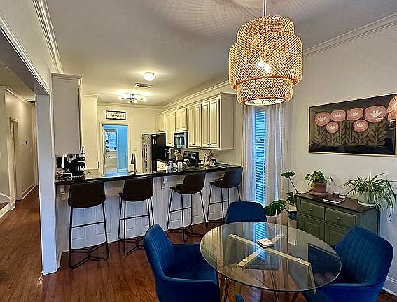 Open floor planCrown moldingStainless steel appliancesWelcoming front porchWood-laminate flooring